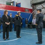 La ceremonia fue presidida por el Comandante del Área Naval Austral, contraalmirante Guillermo Prada, acompañado por la Vicegobernadora Mónica Urquiza junto a la presidenta del Superior Tribunal de Justicia de Tierra del Fuego, Dra. María del Carmen Battaini.